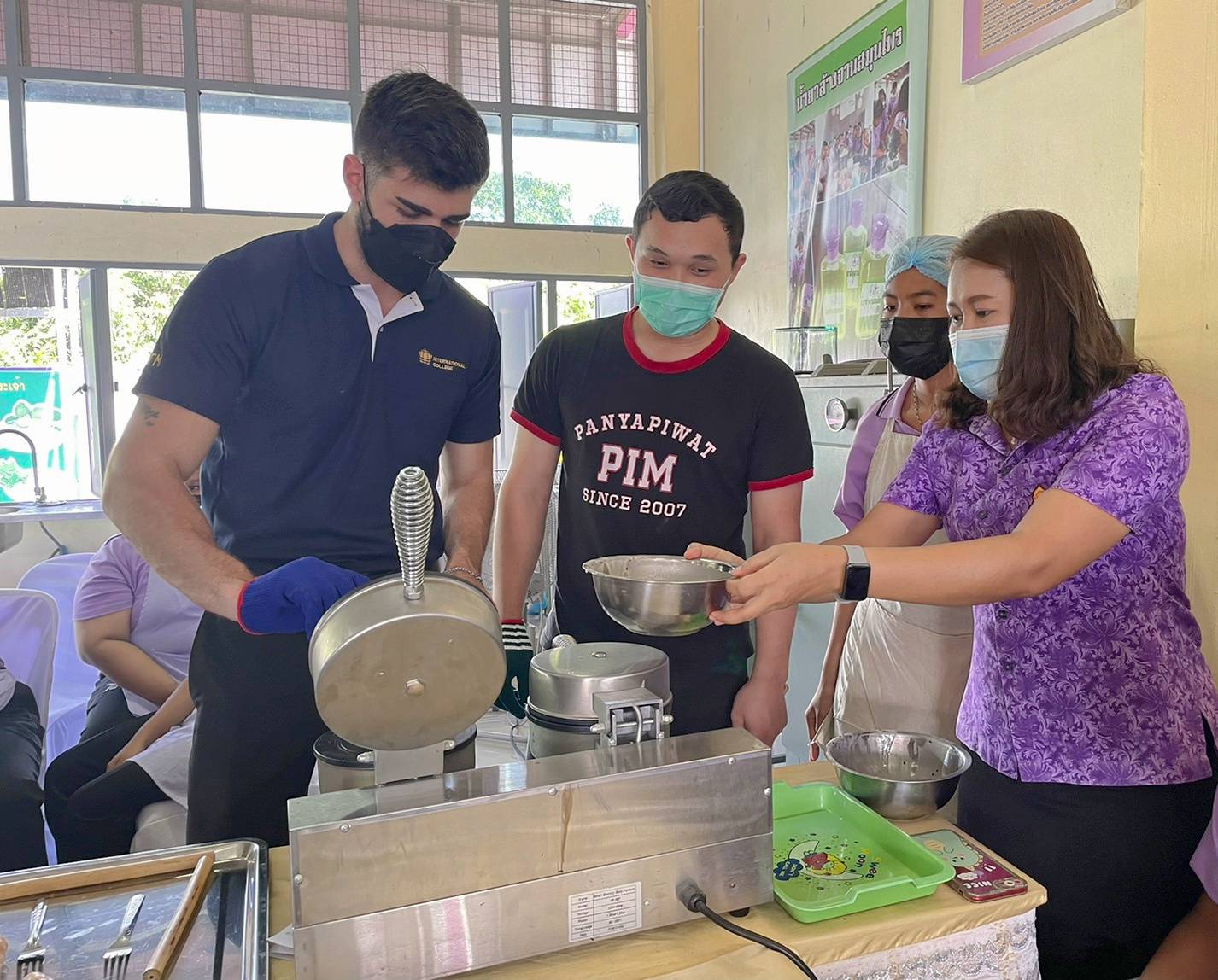 สํานักวิเทศสัมพันธ์ นำนักศึกษาเเลกเปลี่ยนจากประเทศสวีเดน,ไต้หวัน เเละคาซัคสถาน เข้าเยี่ยมชมศูนย์การเรียนรู้ธุรกิจชุมชน Good Herb Good Health by ภูมิปัญญาป่าพระเจ้าของโรงเรียนวัดป่าพระเจ้า อำเภอศรีประจันต์ จังหวัดสุพรรณบุรี เเละโครงการจีบเก่ง ตีมันส์ EVERYONE CAN DO โรงเรียนบ้านนเรศ อำเภอดอนเจดีย์ จังหวัดสุพรรณบุรี ซึ่งเป็นโรงเรียนสานอนาคตการศึกษา คอนเน็กซ์ อีดี สังกัดสถาบันการจัดการปัญญาภิวัฒน์ เพื่อแลกเปลี่ยนและเรียนรู้ในวิถีชีวิตและวัฒนธรรมโดยมีครูและนักเรียนมาร่วมสาธิตและอธิบายการทำขนมทองม้วนสมุนไพร ข้าวเกรียบสมุนไพร และพาเดินชมแปลงปลูกสมุนไพรในโรงเรียนวัดป่าพระเจ้า นอกจากนั้นยังเข้ารับฟังการบรรยายถึงที่มาโครงการ รับชมการเเสดงรำกลองยาวจากนักเรียน และเยี่ยมชมศูนย์การเรียนรู้การจับจีบผ้าของโรงเรียนบ้านนเรศอีกด้วย
