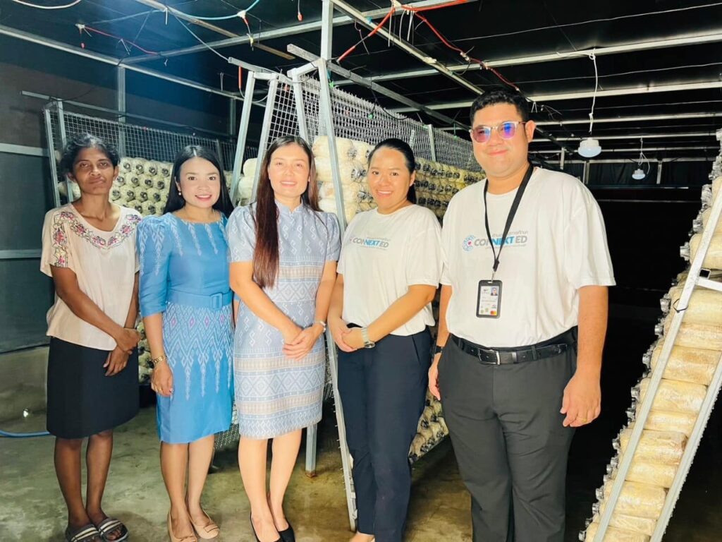 คณะอาจารย์และนักศึกษาจาก Iwate University ประเทศญี่ปุ่นเข้าศึกษาดูงานในโรงเรือนเพาะเห็ดนางฟ้าระบบอัจฉริยะ ที่มีต้นแบบการเพาะเห็ดจากวิสาหกิจชุมชนเพิ่มทรัพย์เห็ดฟาร์ม ณ โรงเรียนวัดจำปี จังหวัดสุพรรณบุรี