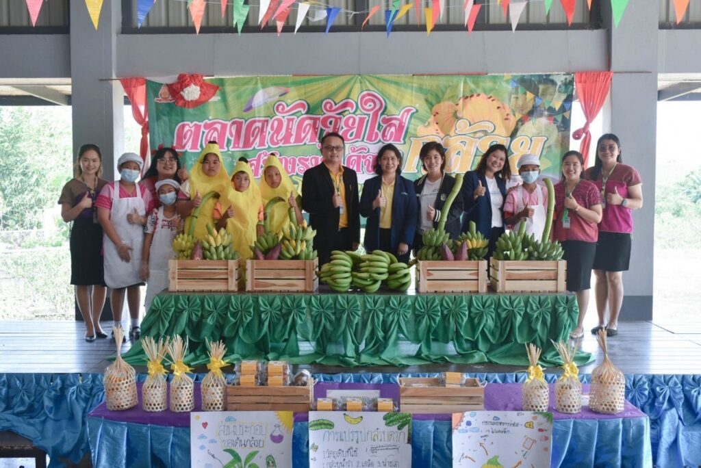 คณะผู้บริหาร PIM เยี่ยมชมศูนย์การเรียนรู้กล้วยดงขี้เหล็ก ช่วยเด็กสร้างอาชีพ ณ โรงเรียนวัดดงขี้เหล็ก และศูนย์การเรียนรู้ต้นแบบการเพาะเห็ดนางฟ้าด้วยระบบอัจฉริยะ ณ โรงเรียนวัดจำปี จังหวัดสุพรรณบุรี