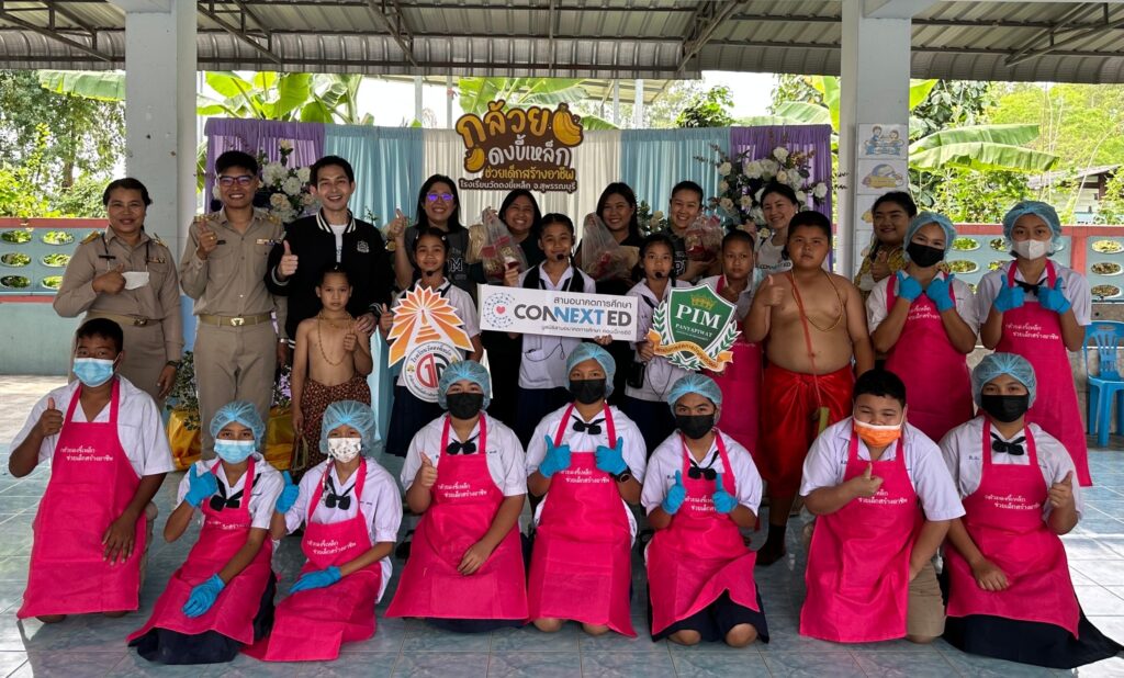 PIM CONNEXT ED ร่วมกับสํานักวิเทศสัมพันธ์ นำนักศึกษาเเลกเปลี่ยน ประเทศสวีเดน และประเทศรัสเซีย เข้าเยี่ยมชมโครงการกล้วยดงขี้เหล็ก ช่วยเด็กสร้างอาชีพ ณ โรงเรียนวัดดงขี้เหล็ก อำเภอศรีประจันต์ จังหวัดสุพรรณบุรี