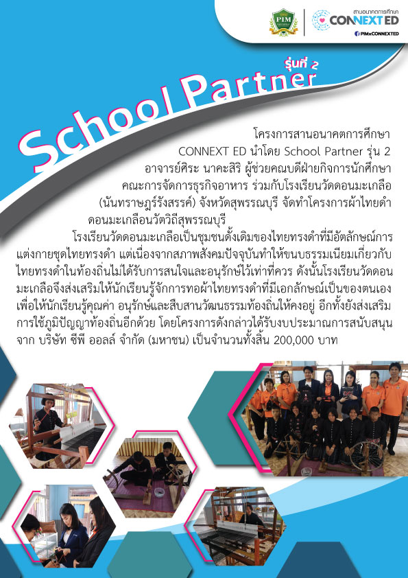 โครงการผ้าไทยดำดอนมะเกลือนวัตวิถีสุพรรณบุรี โรงเรียนวัดดอนมะเกลือ (นันทราษฎร์รังสรรค์) จังหวัดสุพรรณบุรี