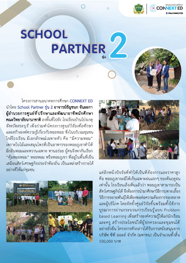 โครงการศูนย์วิจัยเพื่อศึกษาและสร้างองค์ความรู้เกี่ยวกับหอยหอม โรงเรียนบ้านโป่งเกตุ จังหวัดสระบุรี